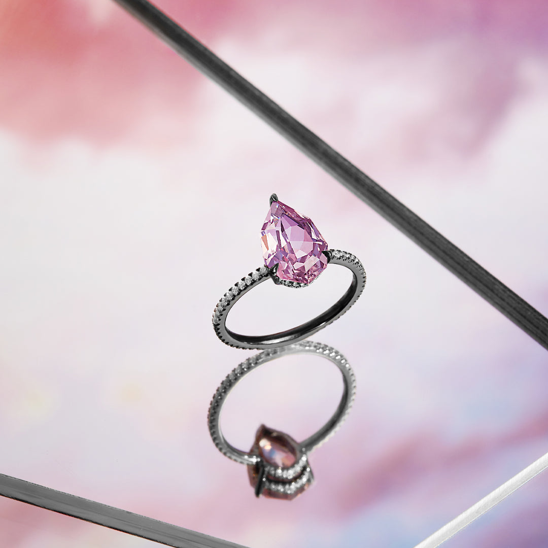 The DUSK Capsule of Eva Fehren's Geo collection explores signature silhouettes and unique geometric stone cuts in a romantic, subtly tonal palette. Inspired by the fleeting moments between day and night when possibilities seem limitless and something new is born while something is ending. The soft yet modern palette includes the cool blues, moss greens and sunset pinks of sapphires, tanzanites and spinels.